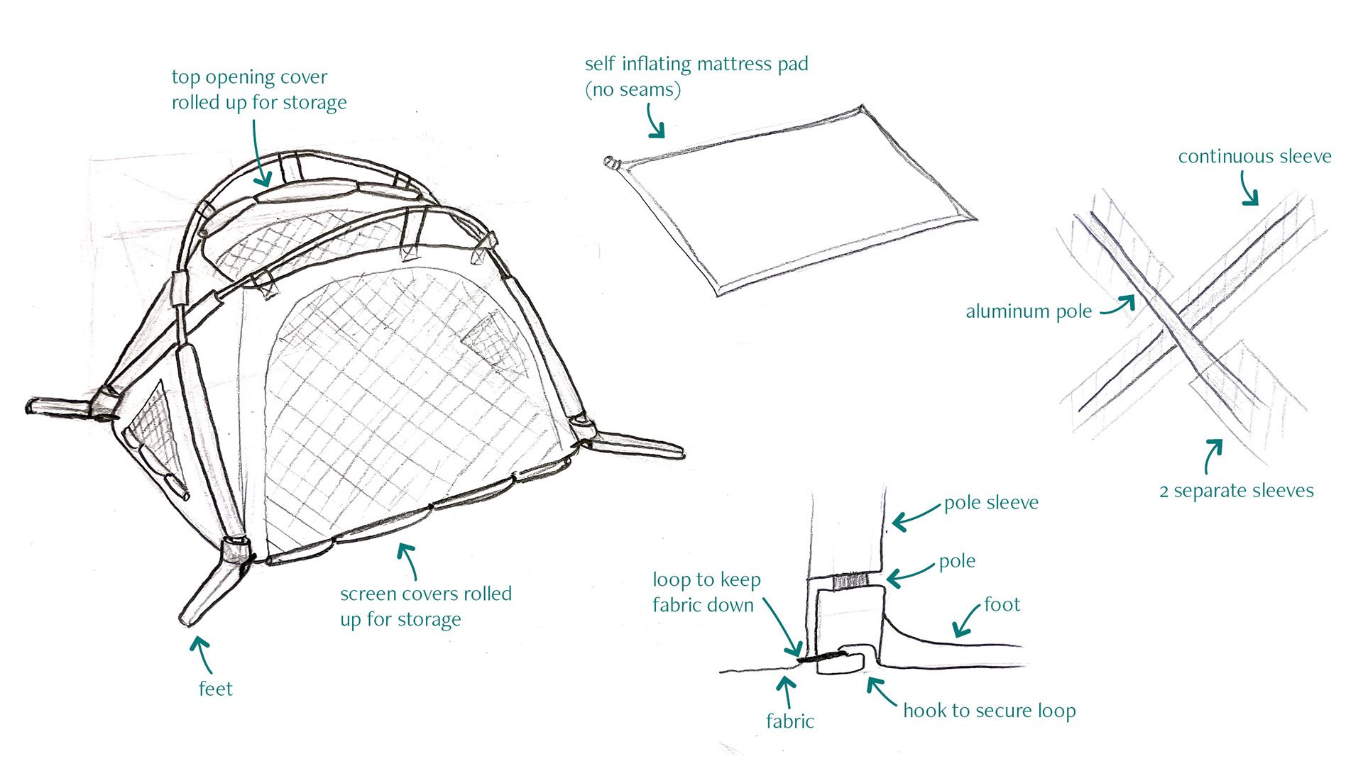 Breathable cotton fabric, see-through mesh, high strength thread, aluminum tent poles